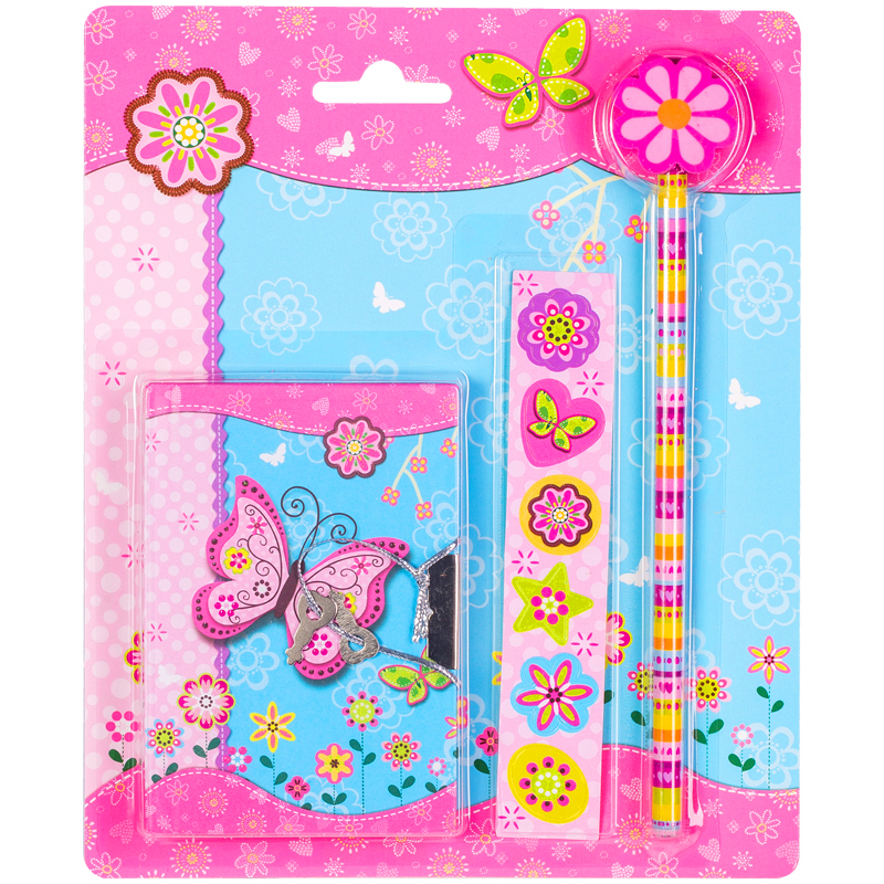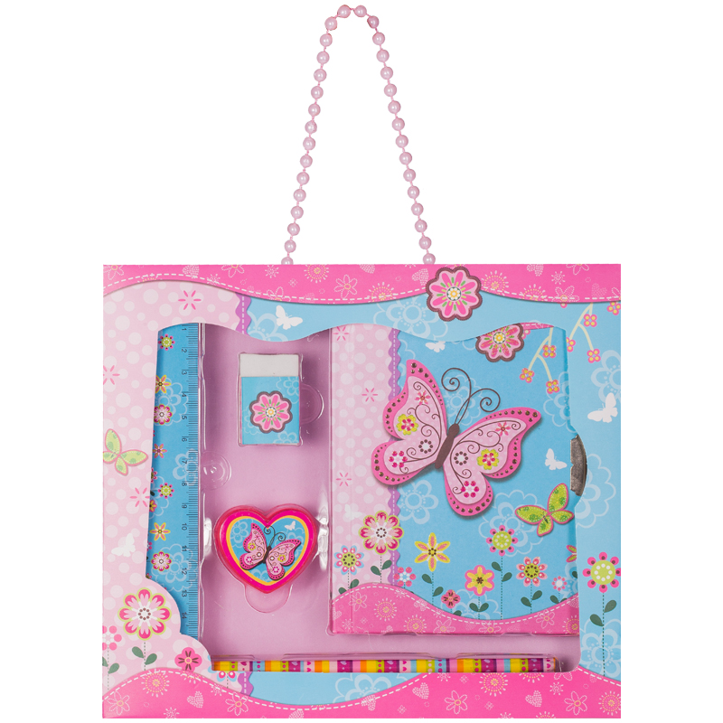 Подарочный набор ArtSpace "Butterfly" зап.книж. 7БЦ А6 64л.замок,линейка,ластик,точилка,2каран