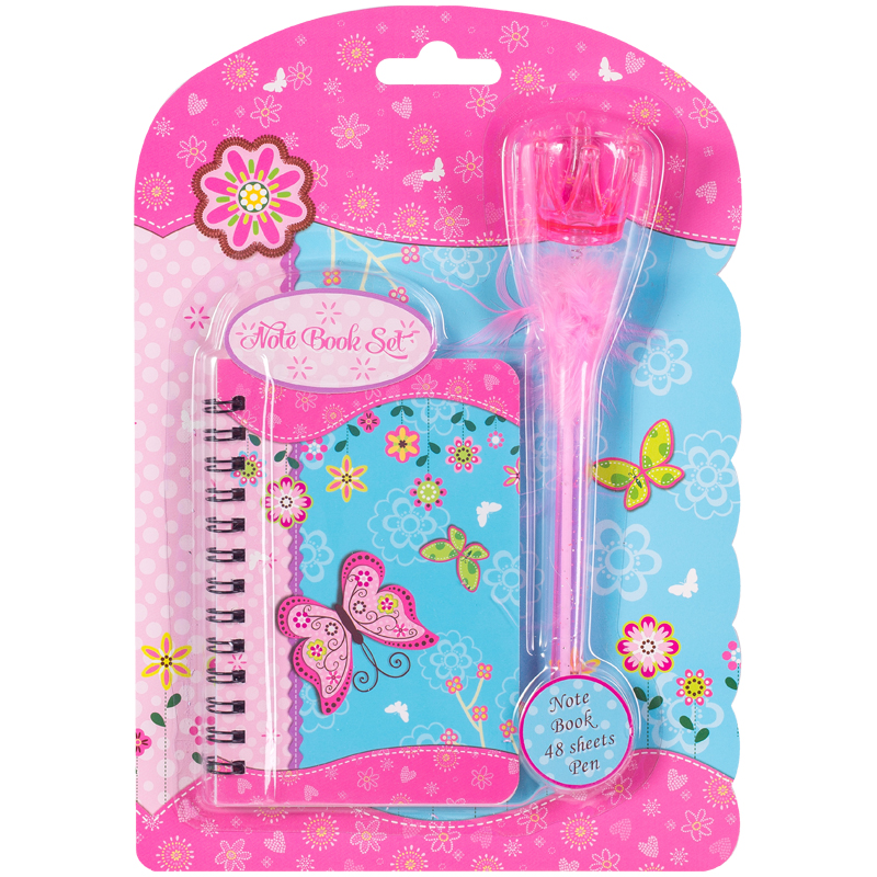 Записная книжка А7 48л. ArtSpace "Butterfly" на гребне +ручка шарик. с помпоном, подар.уп.