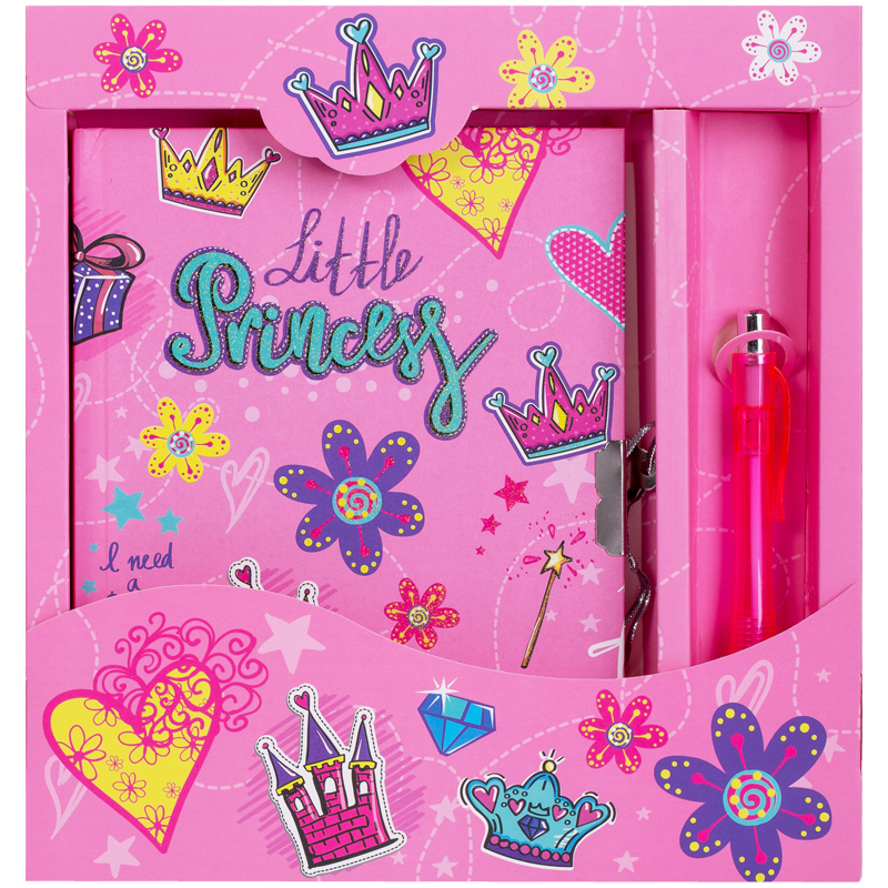 Записная книжка 7БЦ B6 64л. ArtSpace "Little princess" метал. замок + ручка шарик., блестки,подар.уп