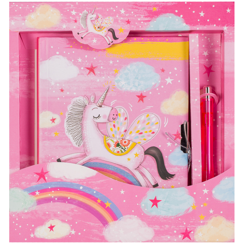 Записная книжка 7БЦ B6 64л. ArtSpace "Happy unicorn" метал. замок + ручка шарик., блестки, подар.уп.