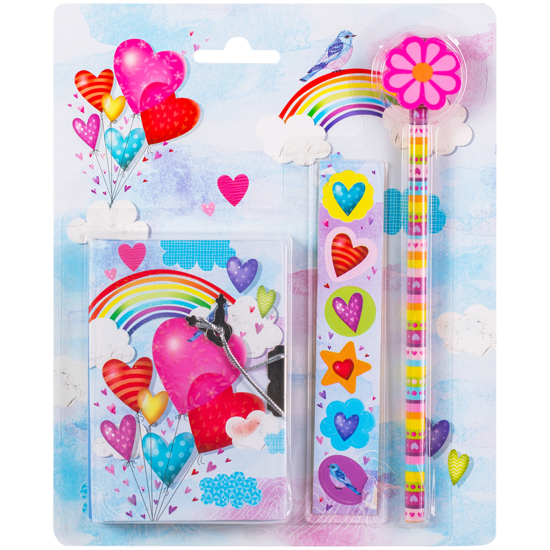 Записная книжка 7БЦ А7 64л. ArtSpace "Hearts" метал.замок+карандаш,ластик,наклейки, подар.уп.