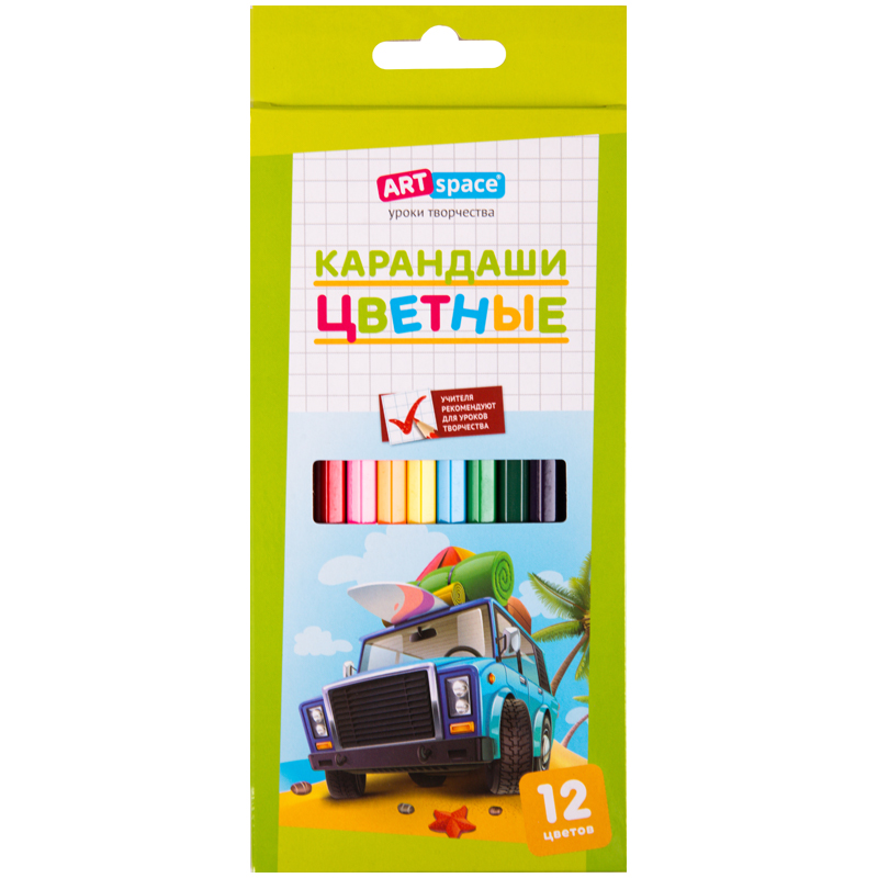 Карандаши цветные ArtSpace "Каникулы", 12цв., заточен., картон, европодвес