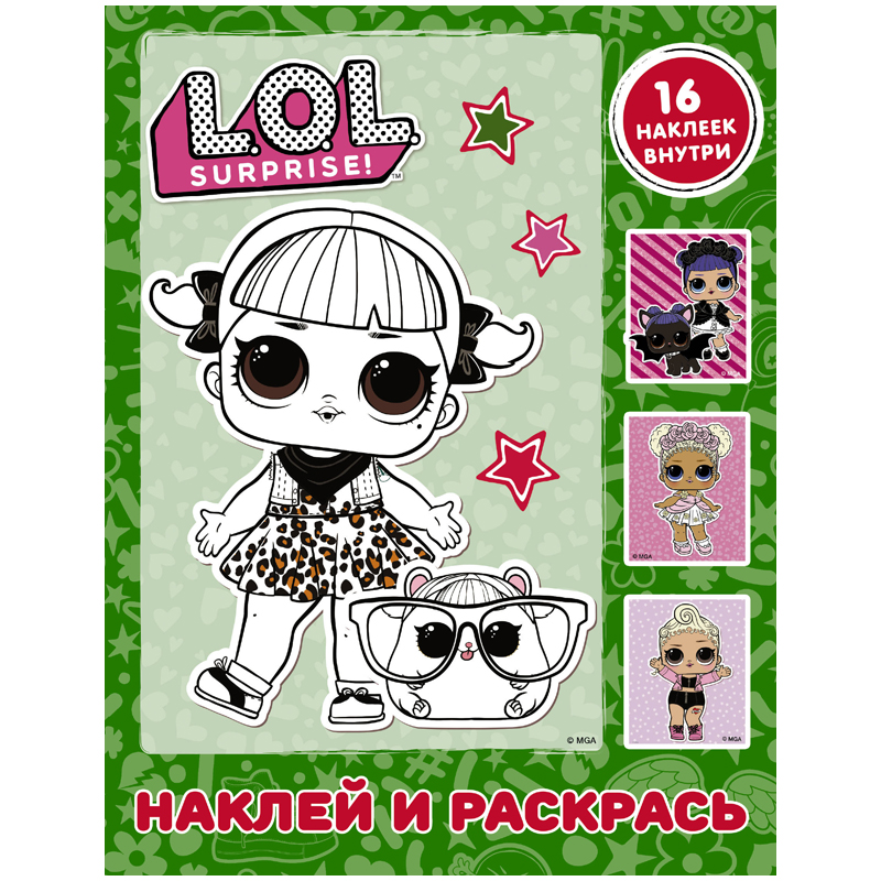Раскраска А4 АСТ "L.O.L. Surprise", зеленая, с наклейками, 16стр.