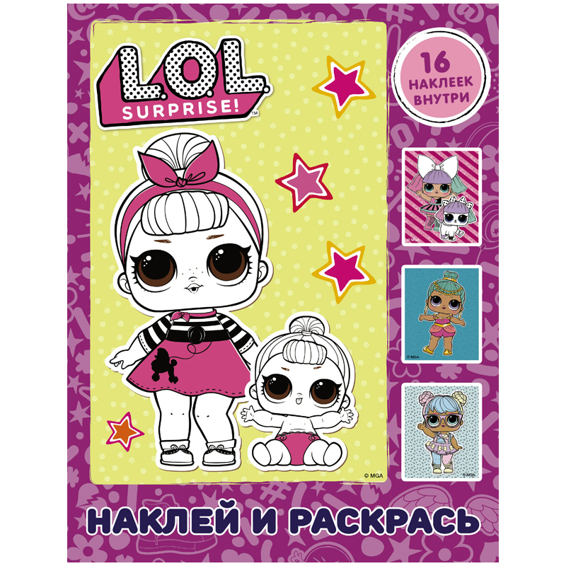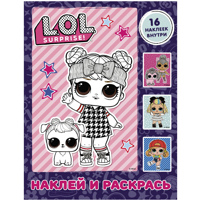 Раскраска А4 АСТ "L.O.L. Surprise", фиолетовая, с наклейками, 16стр.