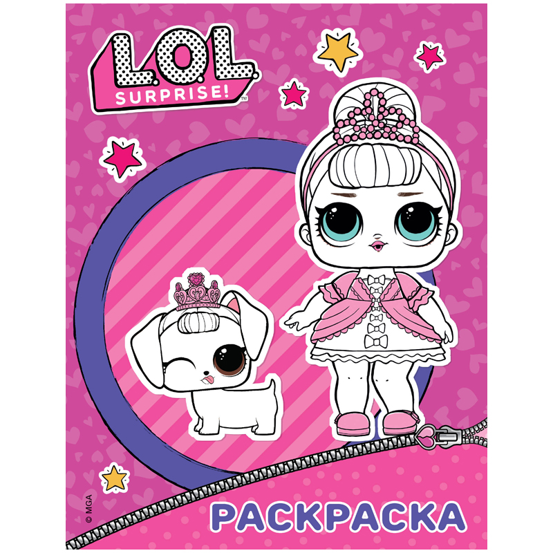 Раскраска А4 АСТ "L.O.L. Surprise", розовая, с наклейками, 16стр.