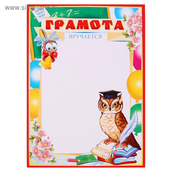 Грамота "Школьная" сова, бумага, А4
