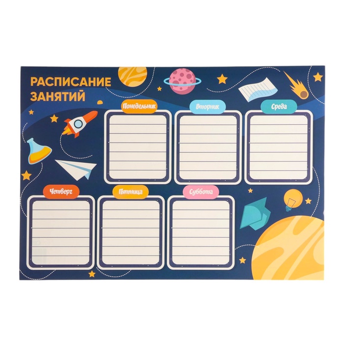 Плакат школьный "Расписание уроков" космос, А4