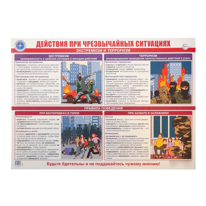 Плакат "Действия при чрезвычайных ситуациях. Экстремизм и терроризм." А2