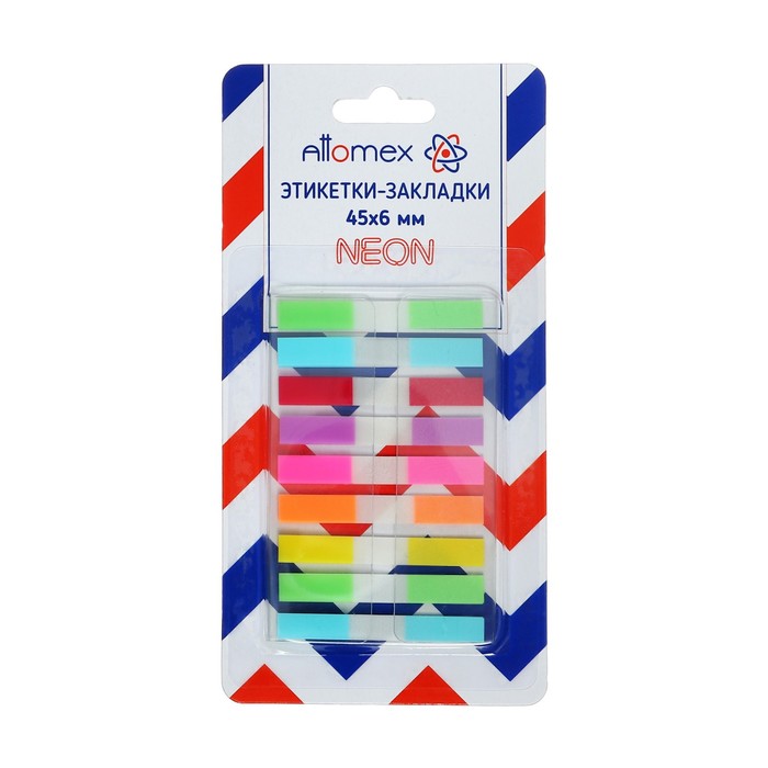 Закладки с клеевым краем 6 х 45 мм, 9 цветов по 10 листов, Z-сложение, пластиковые Attomex, неоновые