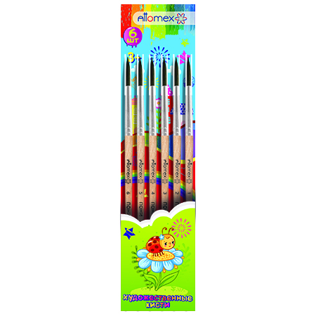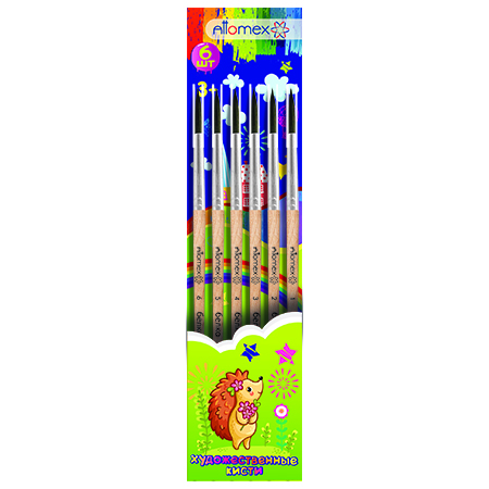 Набор кистей " Attomex " 6шт белка № 1,2,3,4,5,6, деревянная ручка, блистер