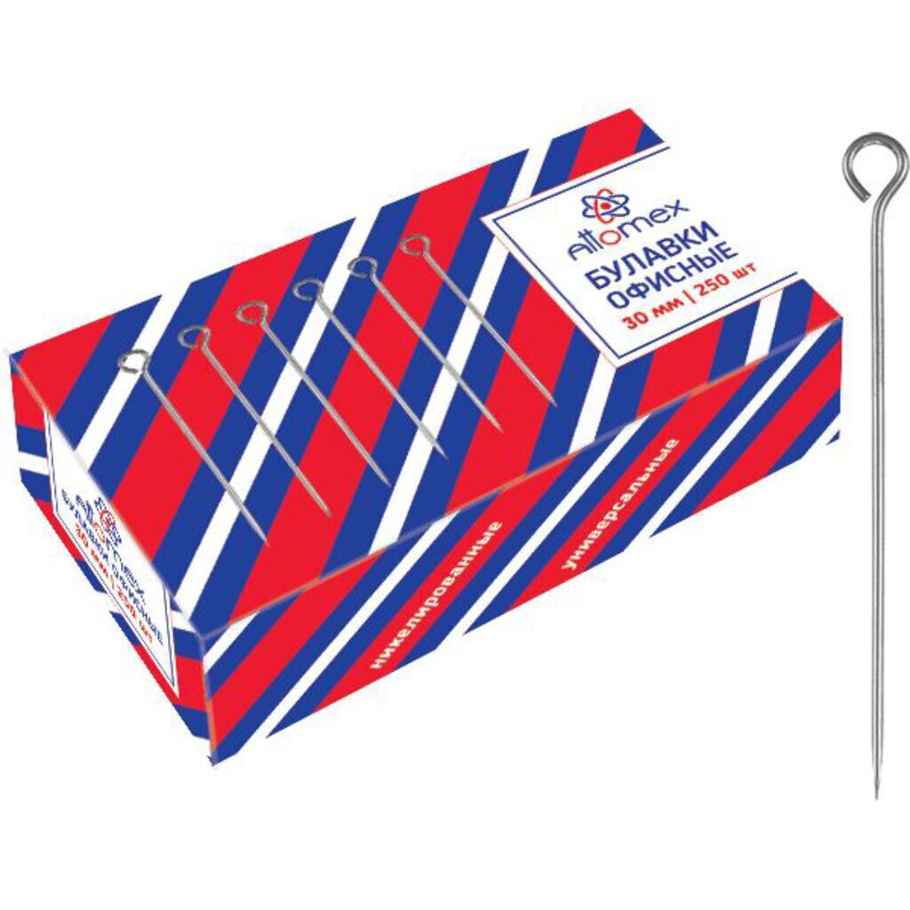 Булавки офисные, L30 мм, 250 шт, карт.уп.