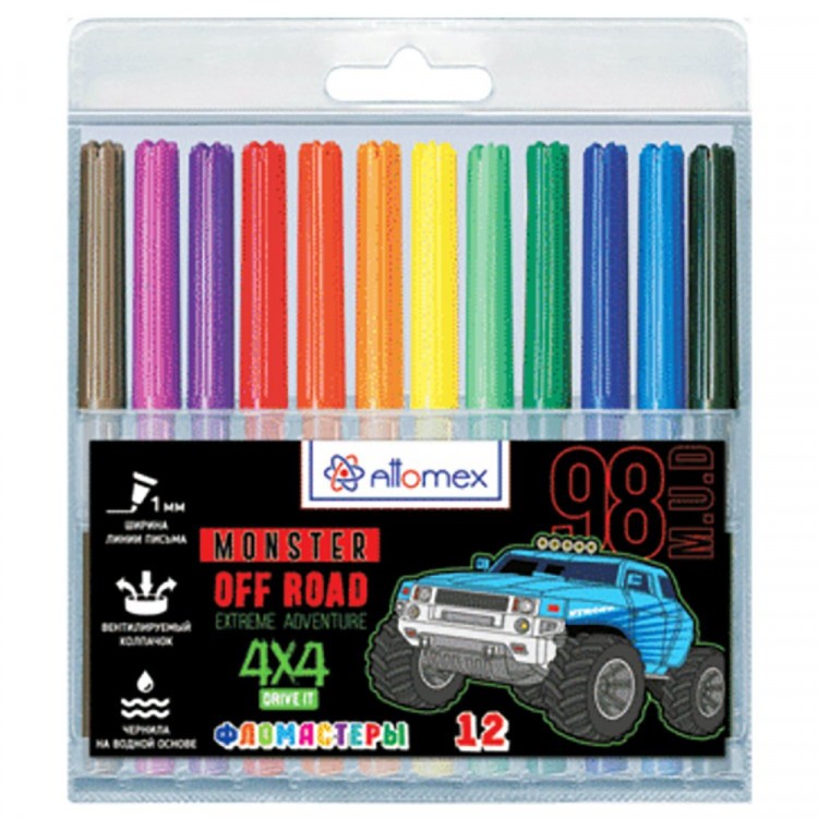 Фломастеры "Attomex. Offroad Monster 12цв", вентил. колпачок, подвес