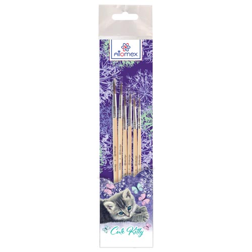 Набор кистей " Attomex " Cute Kitty 6шт белка № 1,2,3,4,5, деревянная ручка, блистер