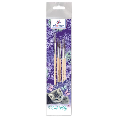 Набор кистей " Attomex " Cute Kitty 5шт пони № 1,2,3,4,5, деревянная ручка, блистер