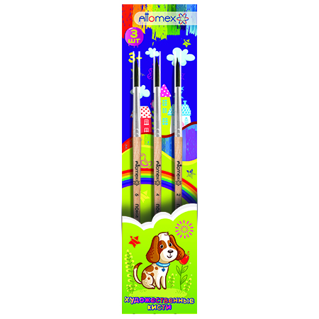Набор кистей " Attomex " 3шт пони № 2,4,6, деревянная ручка, блистер