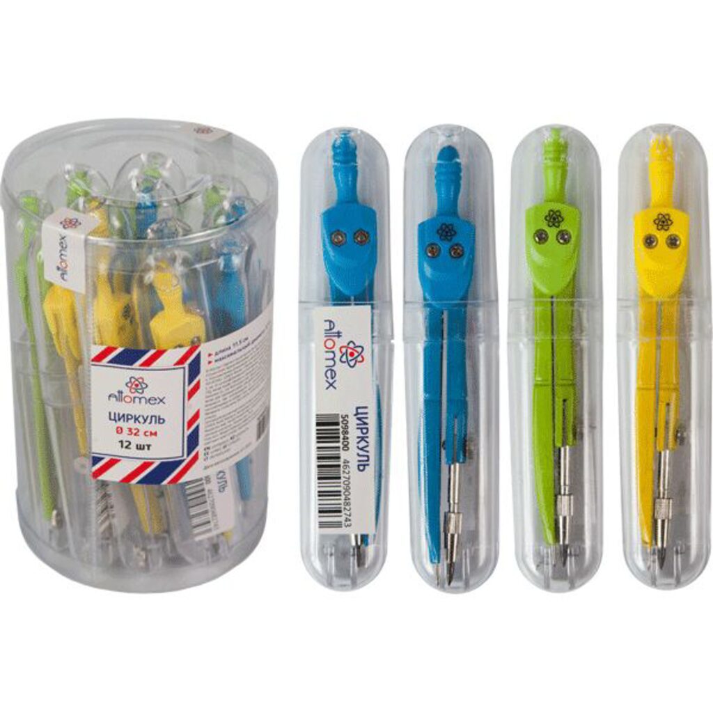 Циркуль металл. Attomex, в пласт.футляре, ассорти