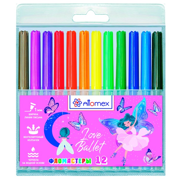 Фломастеры 12 цветов "Ballet" смываемые вентилируемый колпачок пластиковая упаковка е/п