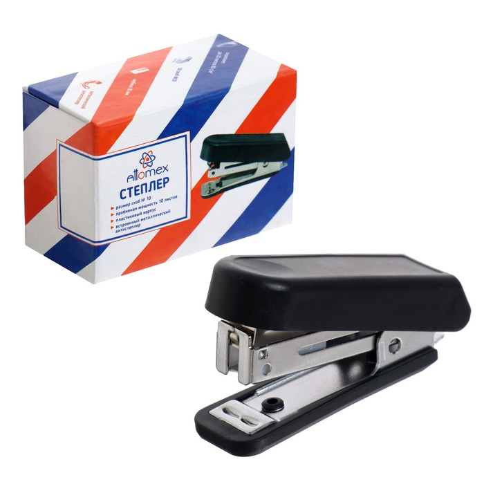 Cтеплер №10, на 10 листов, Attome, пластиковый кропус, встроенный антистеплер, цвет чёрный,