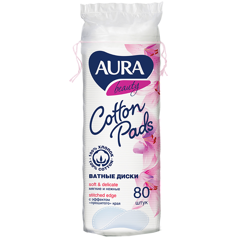 Ватные диски Aura "Beauty", прошитые, 80шт., полиэтиленовый пакет