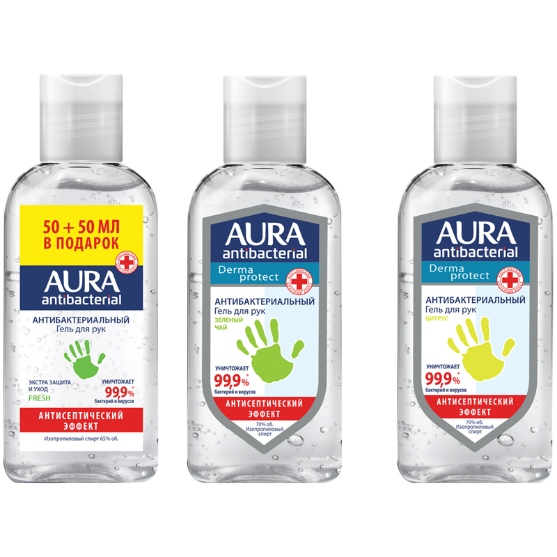 Гель антибактериальный для рук Aura "Fresh", изопропиловый cпирт, 50мл+ПРОМО