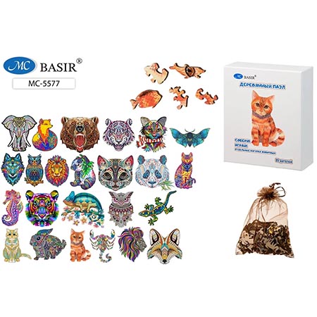 Пазлы деревянные " Basir " 84элемента Животные ассорти (без возможности выбора дизайна) 15*20см, картонная упаковка 11,5*13,5см