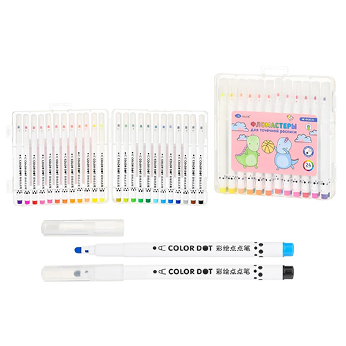 Фломастеры " Basir " Dino 24цв круглые, пластиковый бокс
