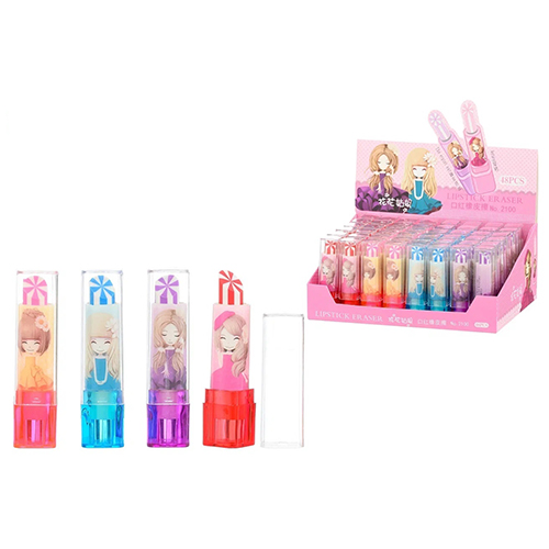 Ластик " Basir " Помада, 7,5см, с рисунком аниме, ассорти, пластиковый футляр