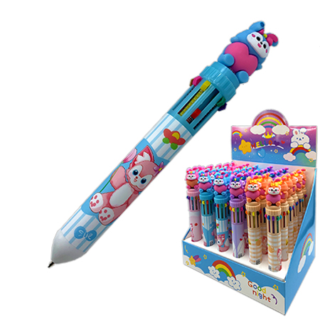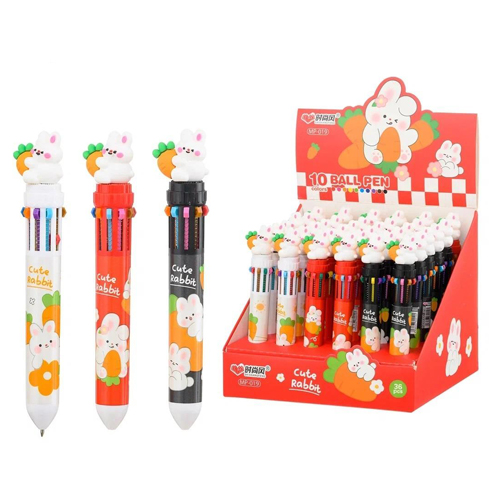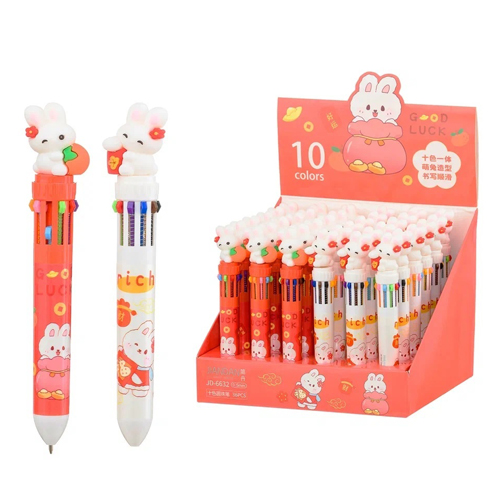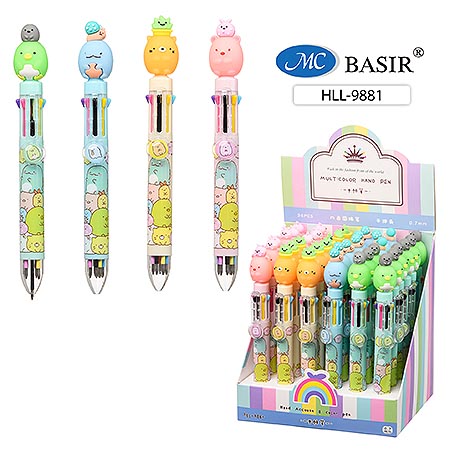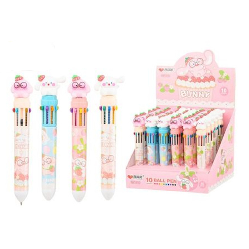 Ручка шариковая автоматическая " Basir " Зайчик, 10цв, 0,5мм, прорезиненный наконечник-зайчик, цветной корпус с рисунком, ассорти