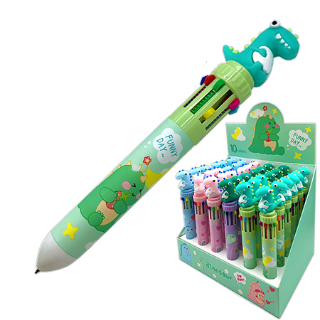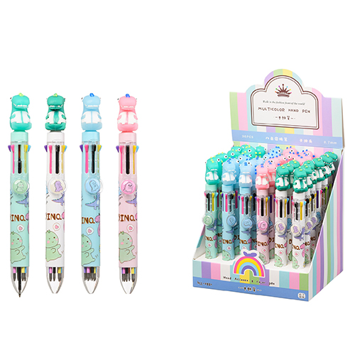 Ручка шариковая автоматическая " Basir " Динозаврик 8цв, 0,7мм, цветной корпус ассорти, прорезиненный наконечник- динозаврик