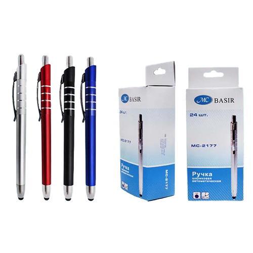 Ручка шариковая автоматическая " Basir " в дисплее синяя 0,7мм, чернила на масляной основе, перламутрово-матовый корпус, с клипом