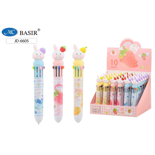 Ручка шариковая автоматическая " Basir " Bunny, 10цв, 0,5мм, прорезиненный наконечник-кролик, цветной корпус с рисунком, ассорти