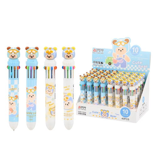 Ручка шариковая автоматическая " Basir " Мишка гонщик 10цв 0,7мм, цветной корпус, ассорти