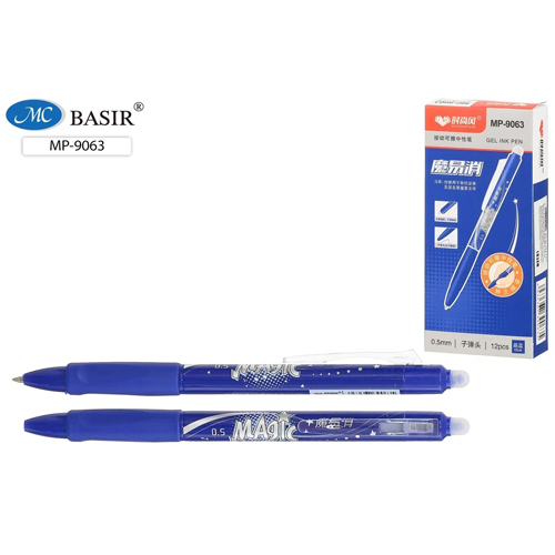 Ручка пиши-стирай автоматическая " Basir " гелевая 0,5мм синяя Magic, синий непрозрачный корпус, картонная упаковка