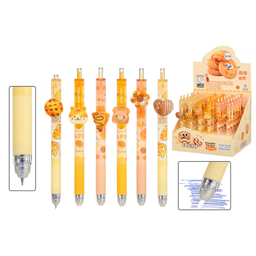 Ручка пиши-стирай автоматическая " Basir " гелевая Домашнее печенье синяя 0,5мм, цветной непрозрачный корпус с рисунком, клип в форме фигурного печенья, ассорти, картонный дисплей