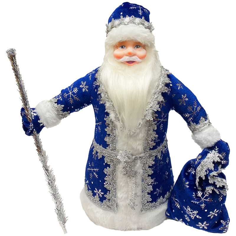 Декоративная кукла "Дед Мороз под елку" 40см, в синем костюме, подарочная упаковка