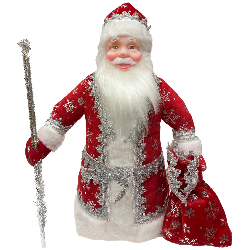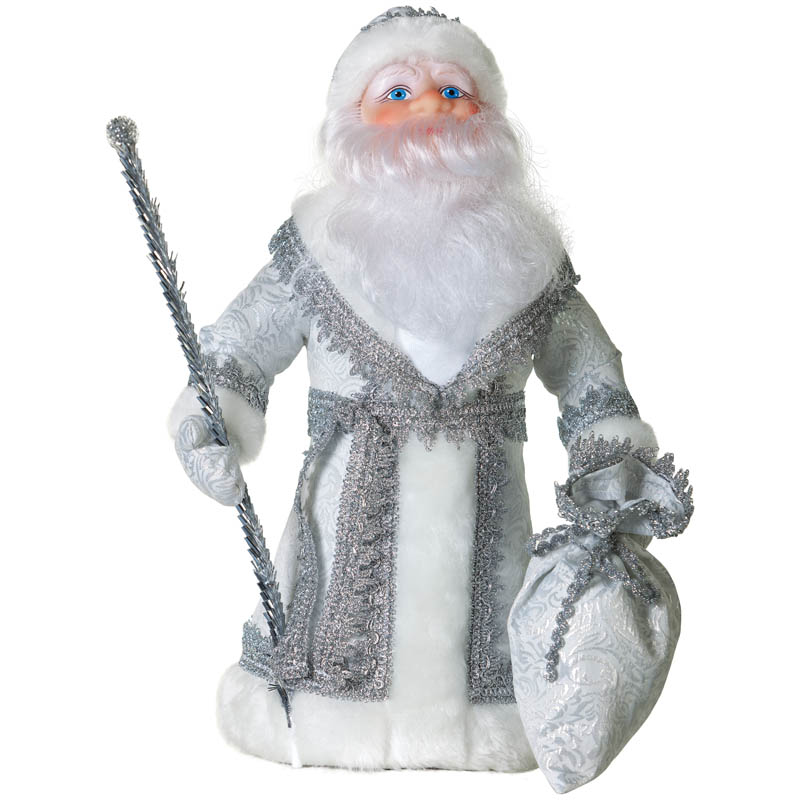 Декоративная кукла "Дед Мороз под елку" 40см, в серебряном костюме, подарочная упаковка