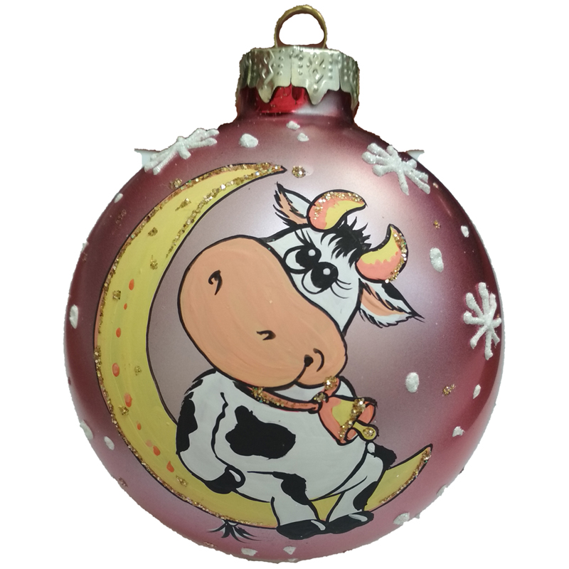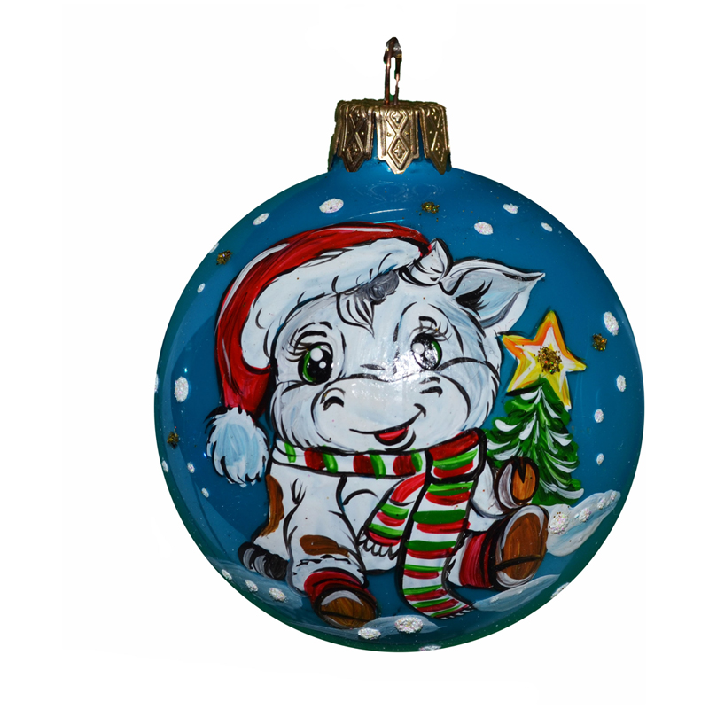 Шар стеклянный "Бычок Кнопочка" 60мм, подарочная упаковка