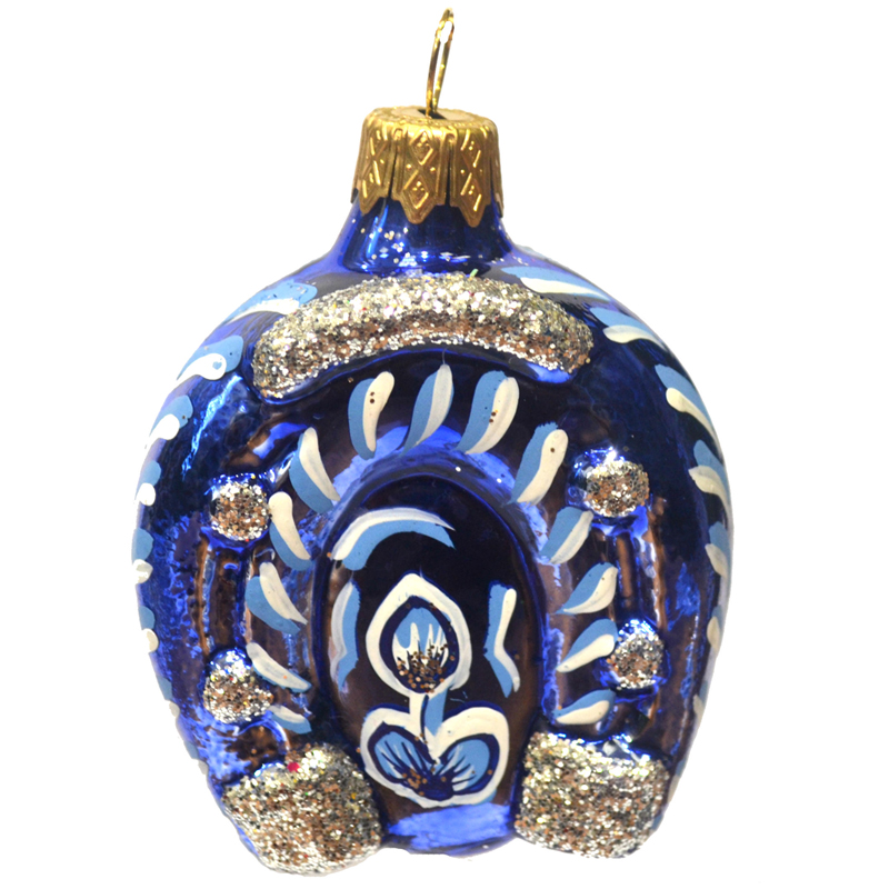 Елочное украшение стеклянное "Подкова Русские узоры" 6см, подарочная упаковка