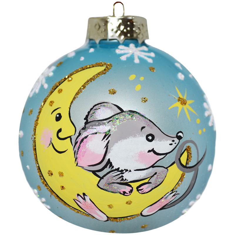 Шар стеклянный "Мышонок с месяцем" 65мм, подарочная упаковка