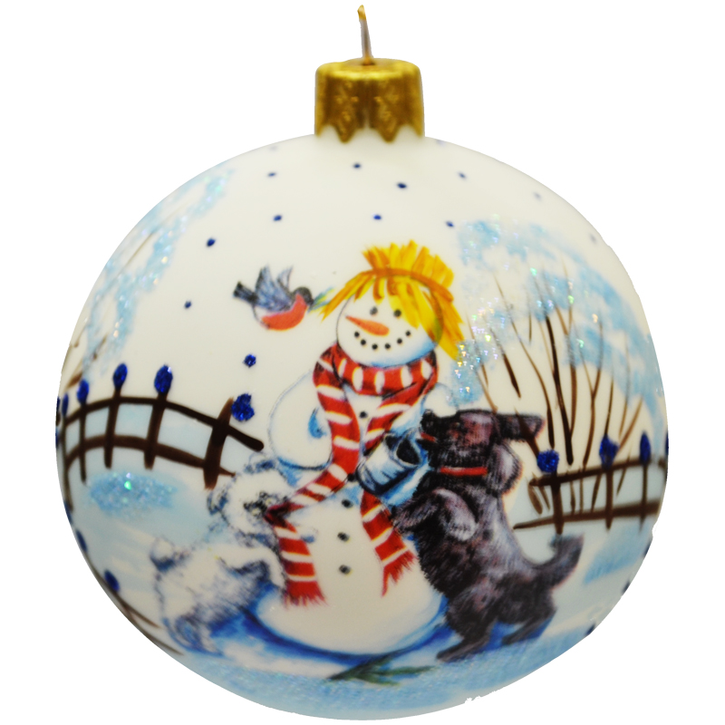 Шар стеклянный "Красивый Снеговичок" 80мм, подарочная упаковка
