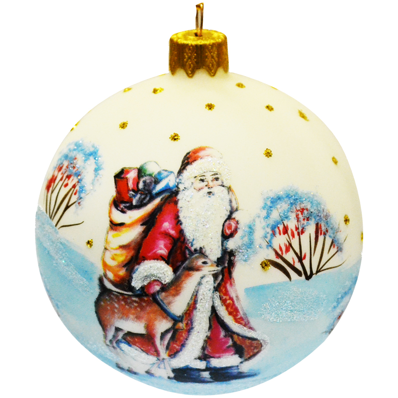 Шар стеклянный "Дед Мороз с олененком" 80мм, подарочная упаковка