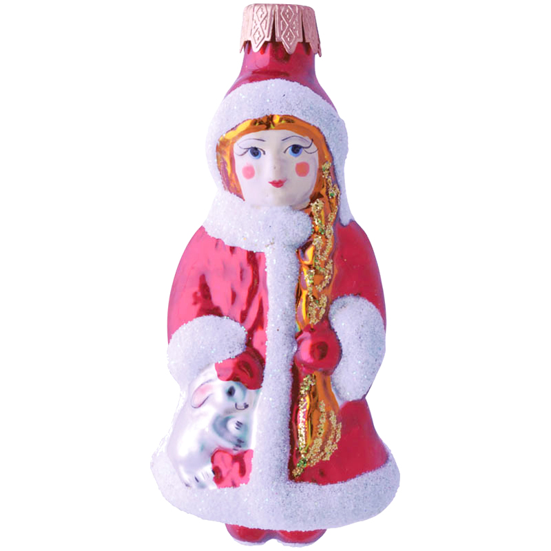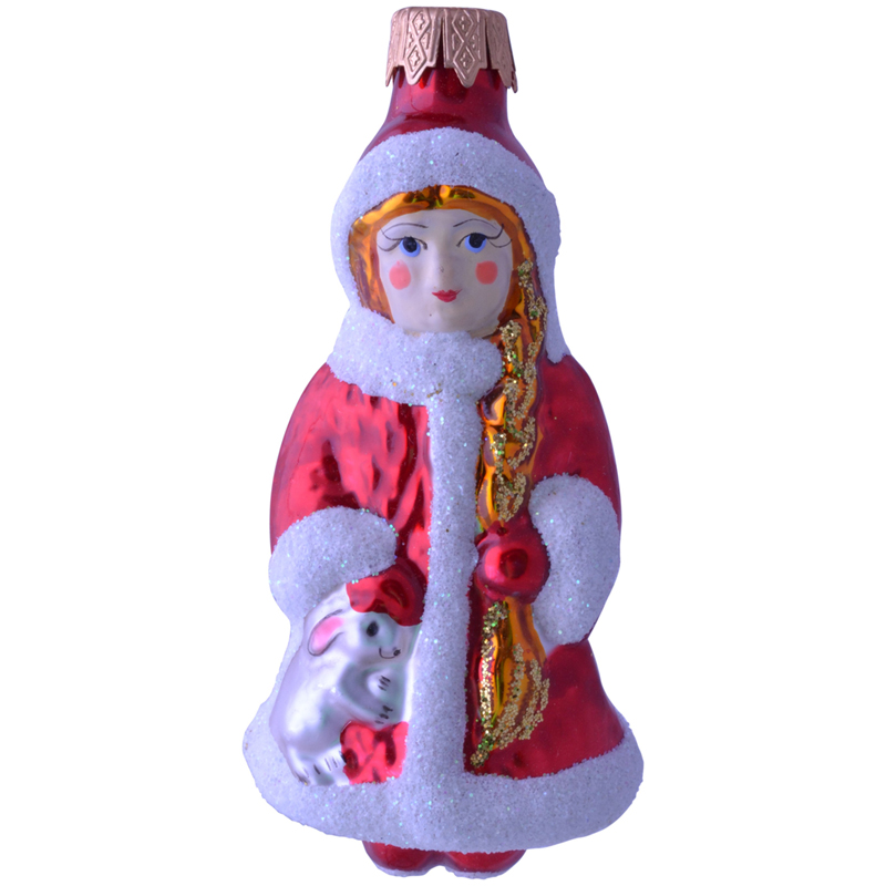 Елочное украшение стеклянное "Снегурочка с косой" 13см, подарочная упаковка