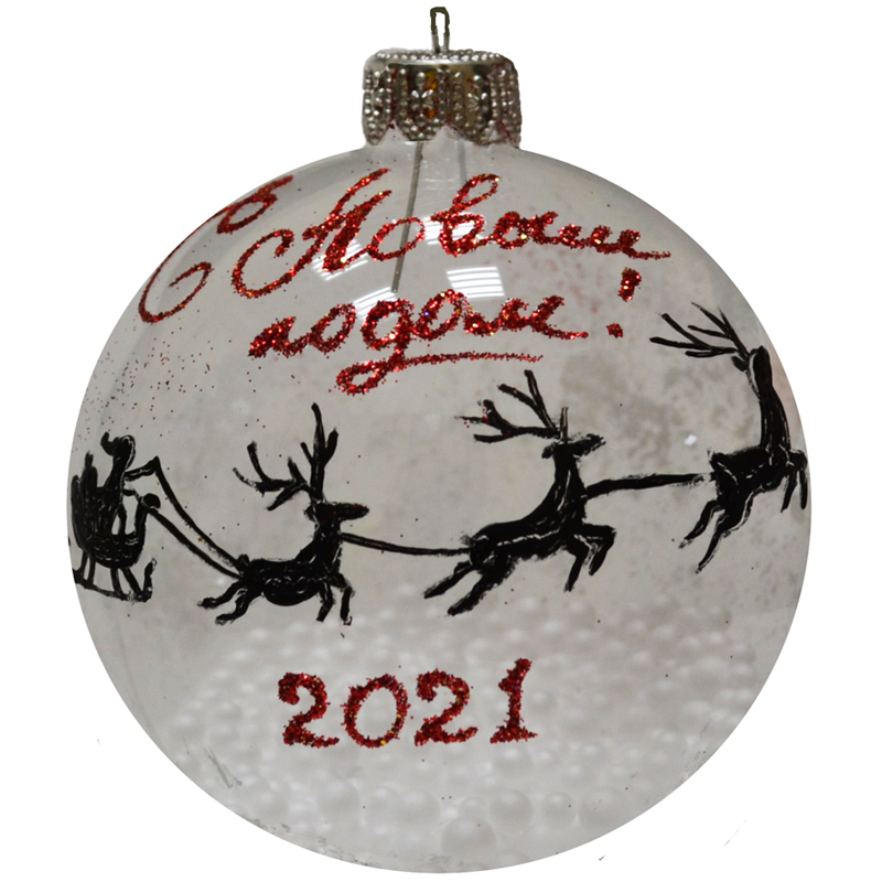 Шар стеклянный "С Новым 2021 годом" 85мм, подарочная упаковка
