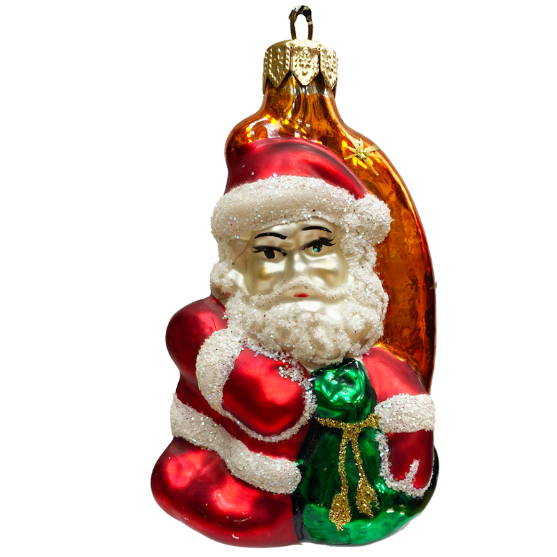 Елочное украшение стеклянное "Дед Мороз на Луне" 13см, подарочная упаковка