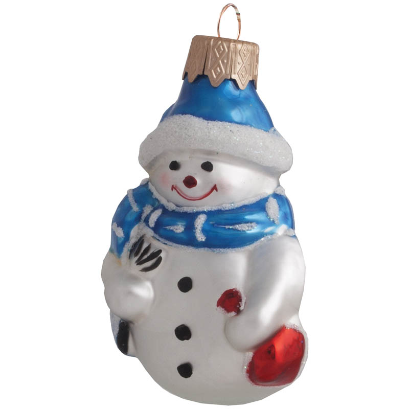 Елочное украшение стеклянное "Снеговик с метлой" 9см, подарочная упаковка