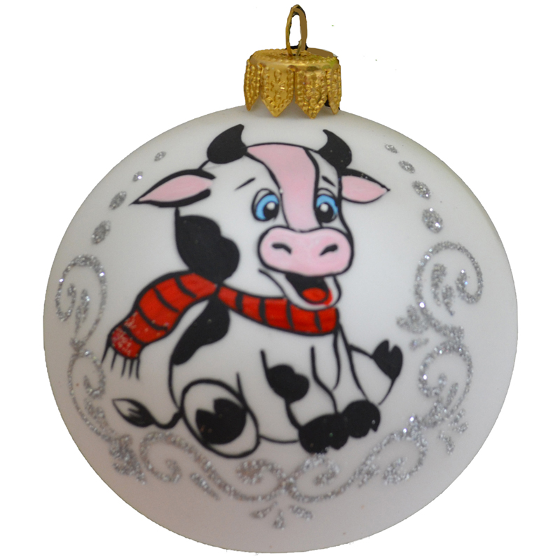 Шар стеклянный "Бычок в шарфе" 85мм, подарочная упаковка