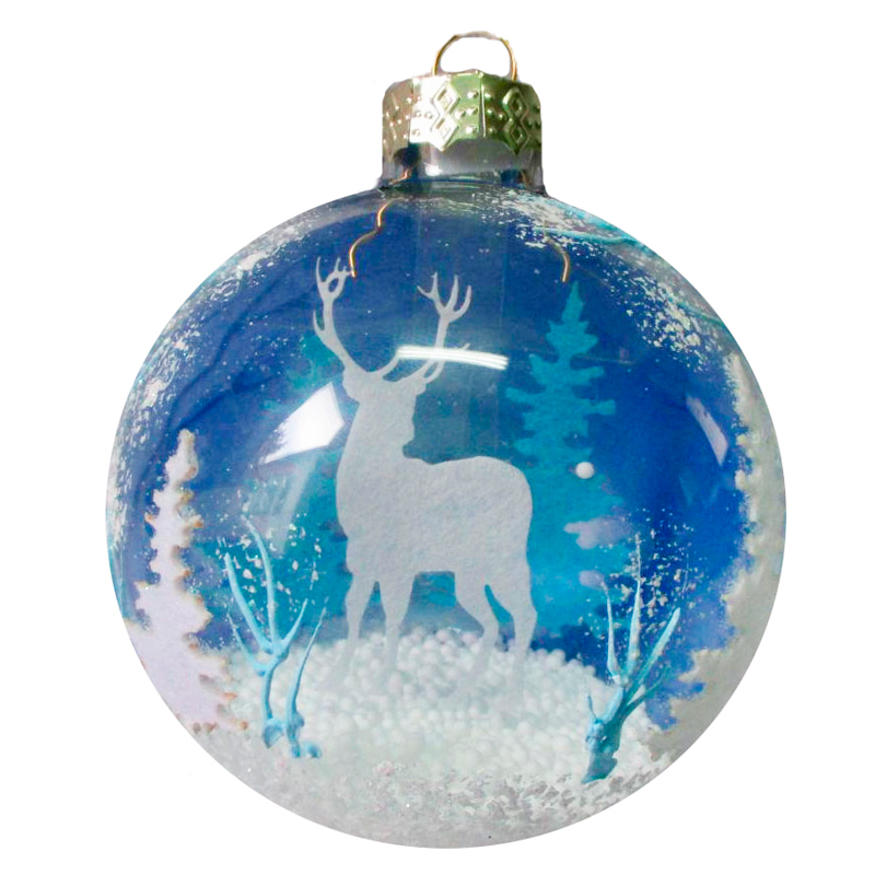 Шар стеклянный "Олень в лесу" 85мм, подарочная упаковка