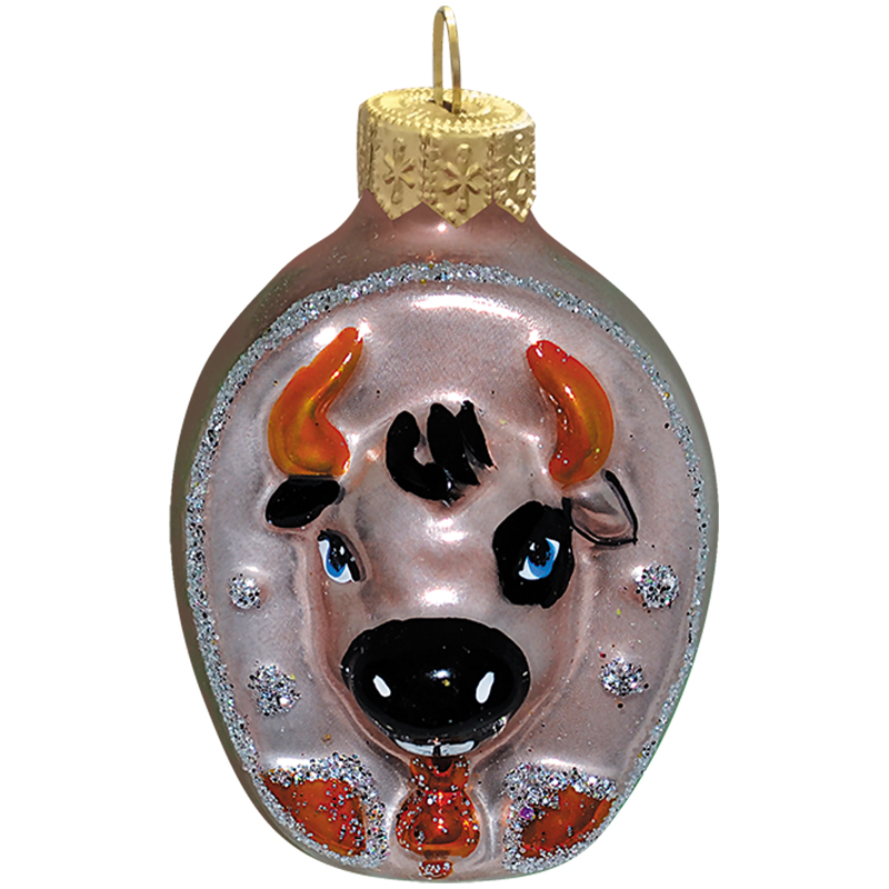 Елочное украшение "Бычок в подкове" 7см, подарочная упаковка