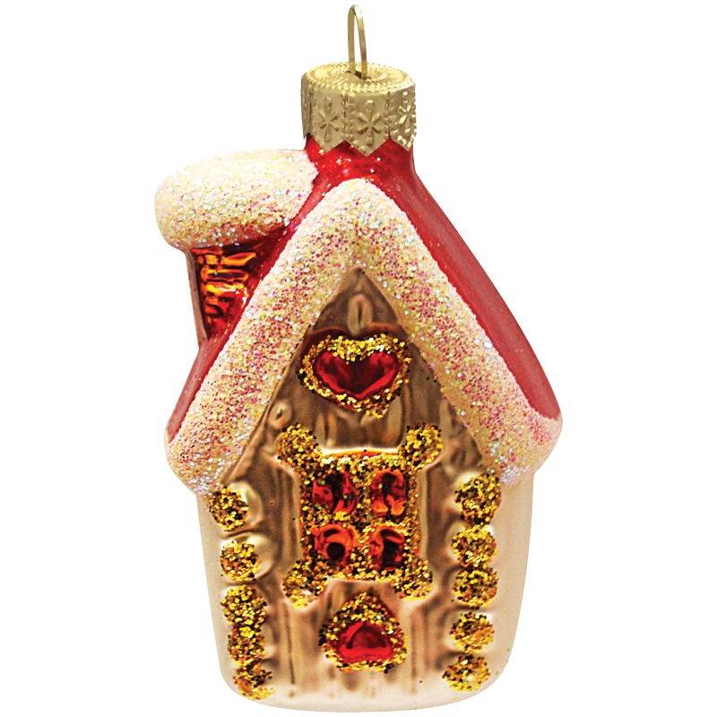 Елочное украшение стеклянное "Зимний домик" 8см, подарочная упаковка