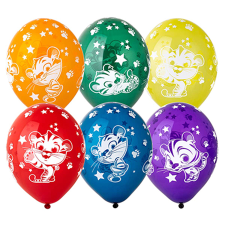 Шар латексный шелкография 14"/35см Тигренок из 6 цветов, 4 дизайнов